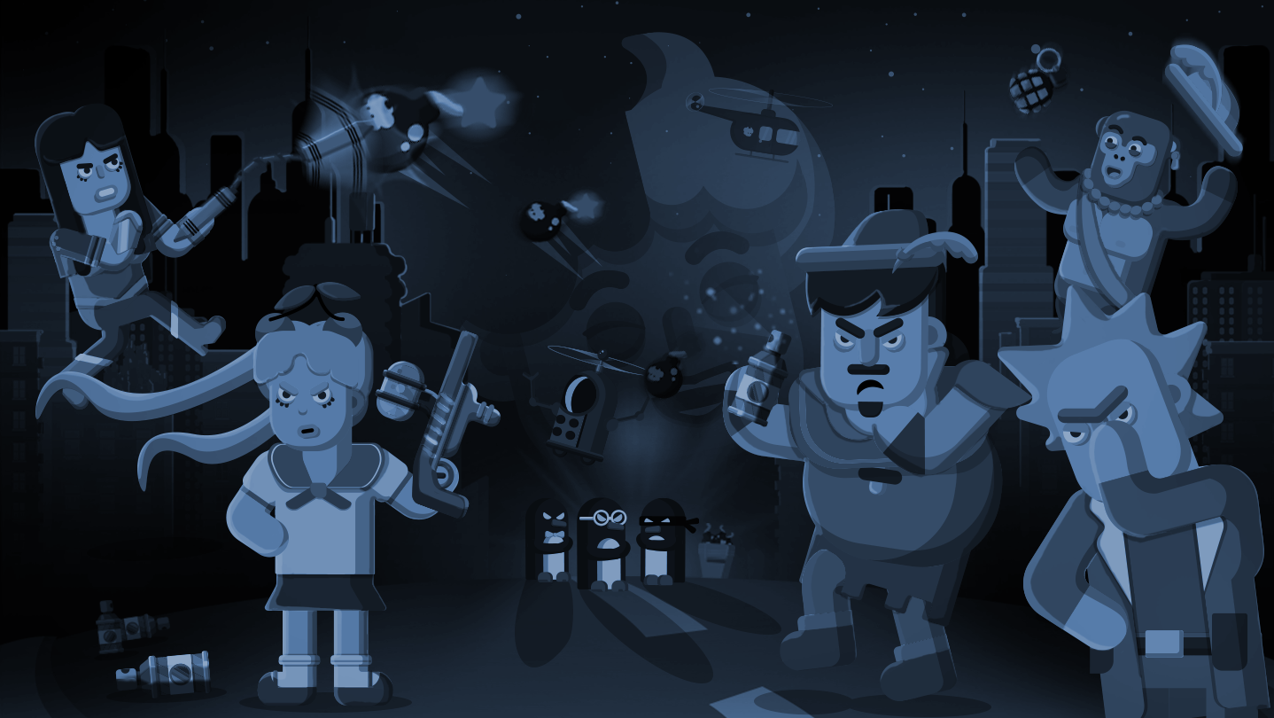 Mona Chrome has turned everything black and white! It’s up to you and your friend to stop her and color the world. You will be jumping and shooting your way through increasingly challenging levels, working together or solo to find the mysterious Pictorian crystals. Choose from a range of familiar-looking characters, all with unique abilities, and unlock even more as you progress through the game!
