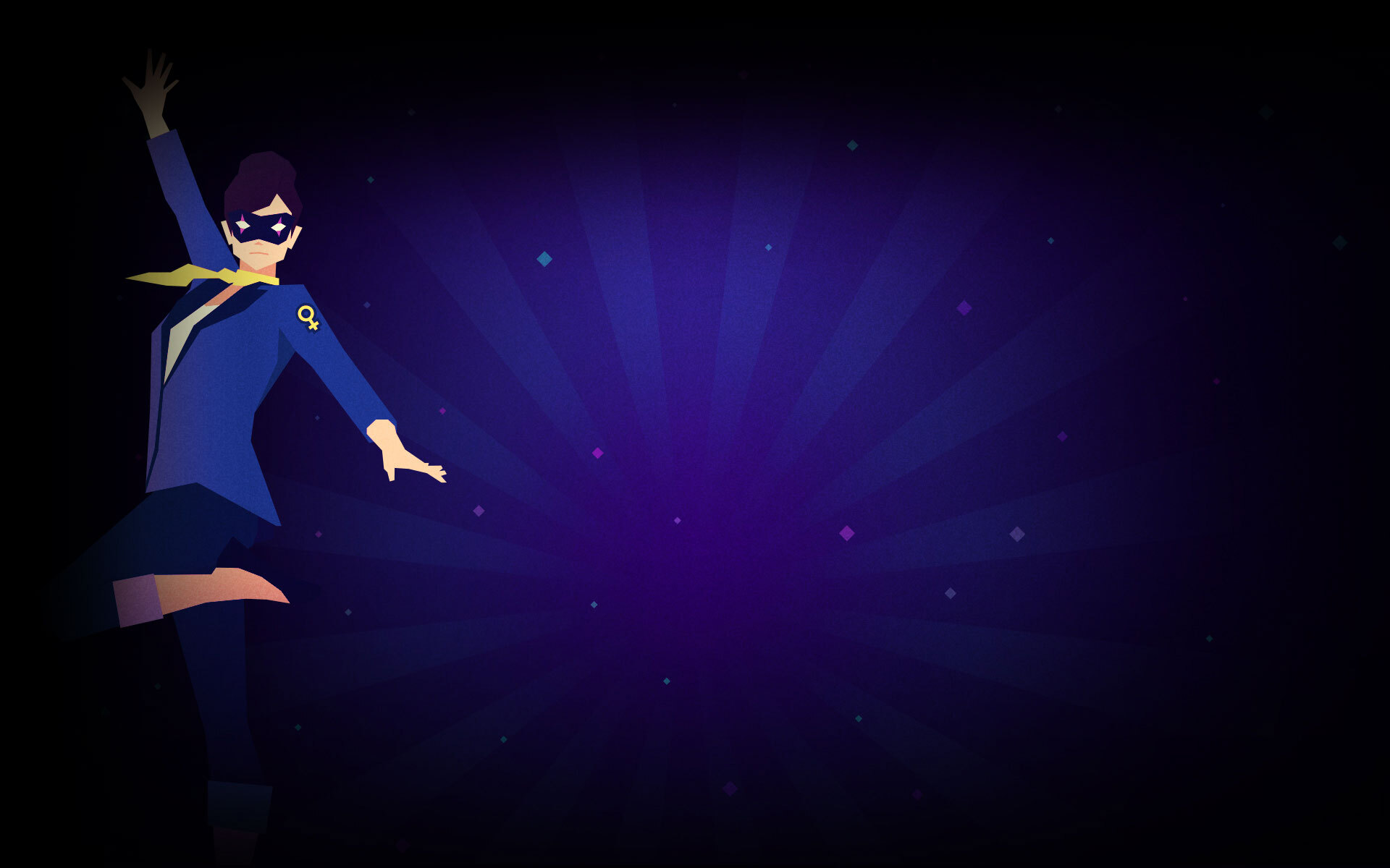 Sayonara Wild Hearts is a dreamy arcade game about riding motorcycles, skateboarding, dance battling, shooting lasers, wielding swords, and breaking hearts at 200 mph.