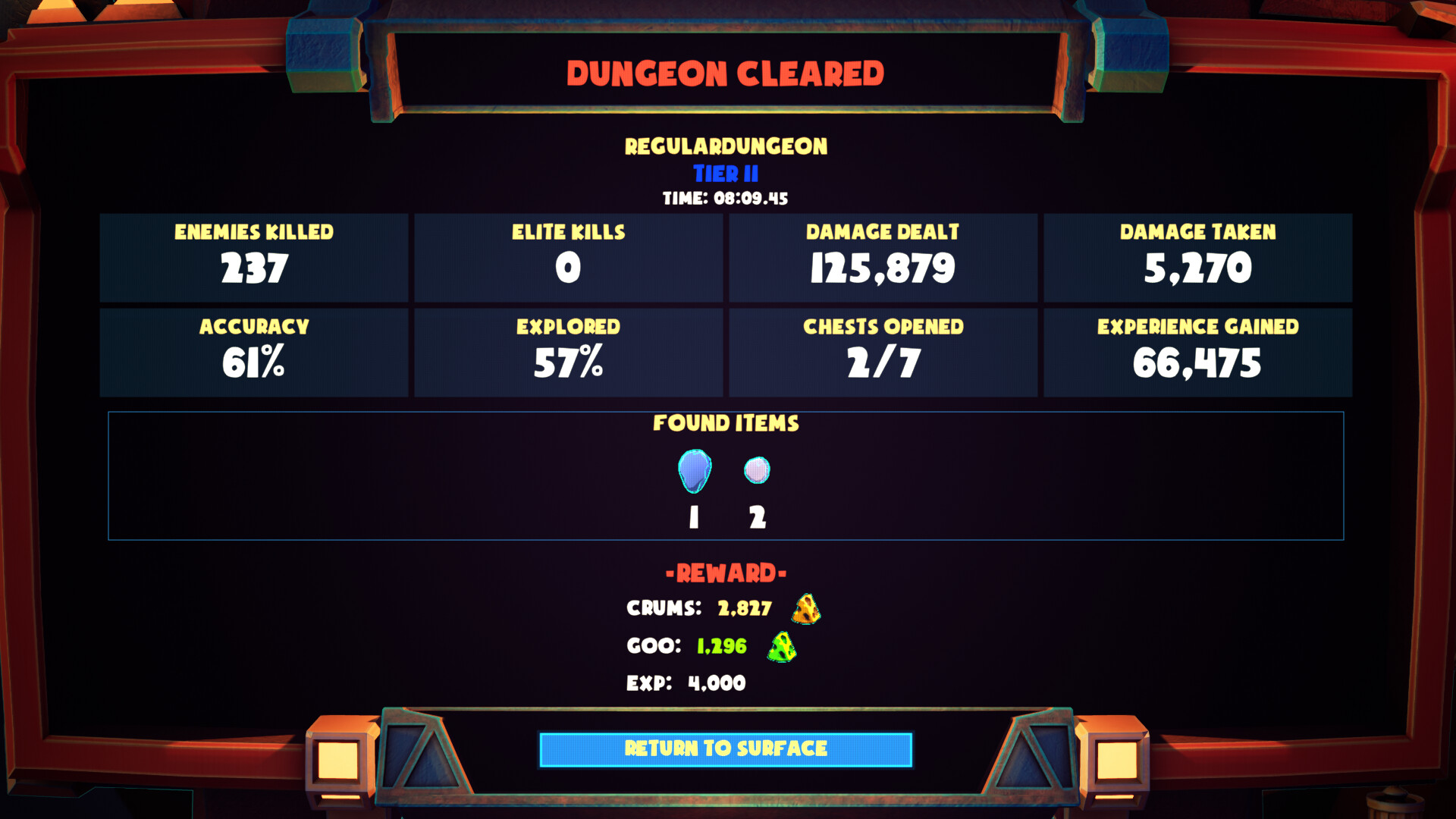 Fight your way through a variety of dungeon layouts and biomes, generated in a combination of predetermined and procedural content.