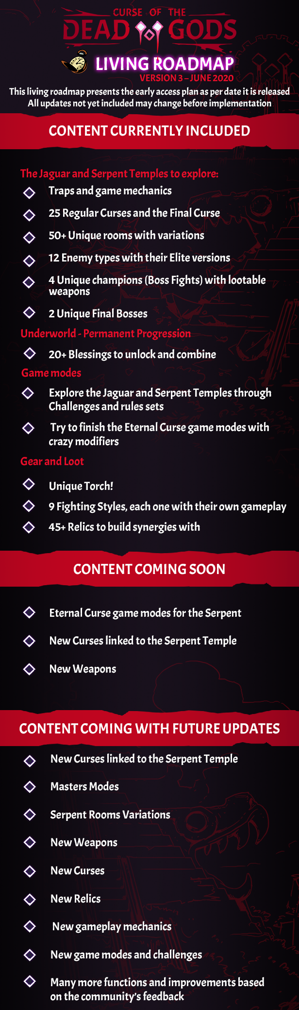 “Curse of the Dead Gods is a passion project and one with a huge variety of possible development directions. We want to get community feedback and opinions on what the best thing to do would be. It is also a modular and replayable game, which we think fits Early Access to a tee. Naturally, we have a development roadmap and a plan to get to release, but we’re willing - and, indeed, excited - to adapt and change as the community finds what they love about our game.