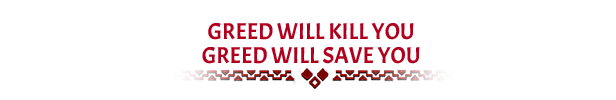 Your greed will lead you to death, but that is not an escape. Rise to fight again. Delve deeper again. Defy the malignant deities that linger in this place.