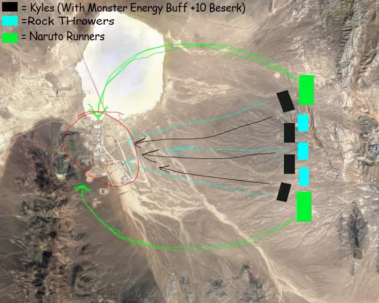 STORM AREA 51: AYY LMAO EDITION - it's time to Storm AREA 51, and see them aliens. If we Naruto Run, we can move faster than their bullets. Rock Throwers will throw pebbles (to annoy them enough to not shoot the Kyles as often). They can't stop all of us...