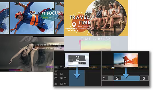 Use Video Collage Designer to create a striking, totally customizable collage complete with animated openings and endings. Use one of our existing templates, or create your own to save and reuse on different projects.