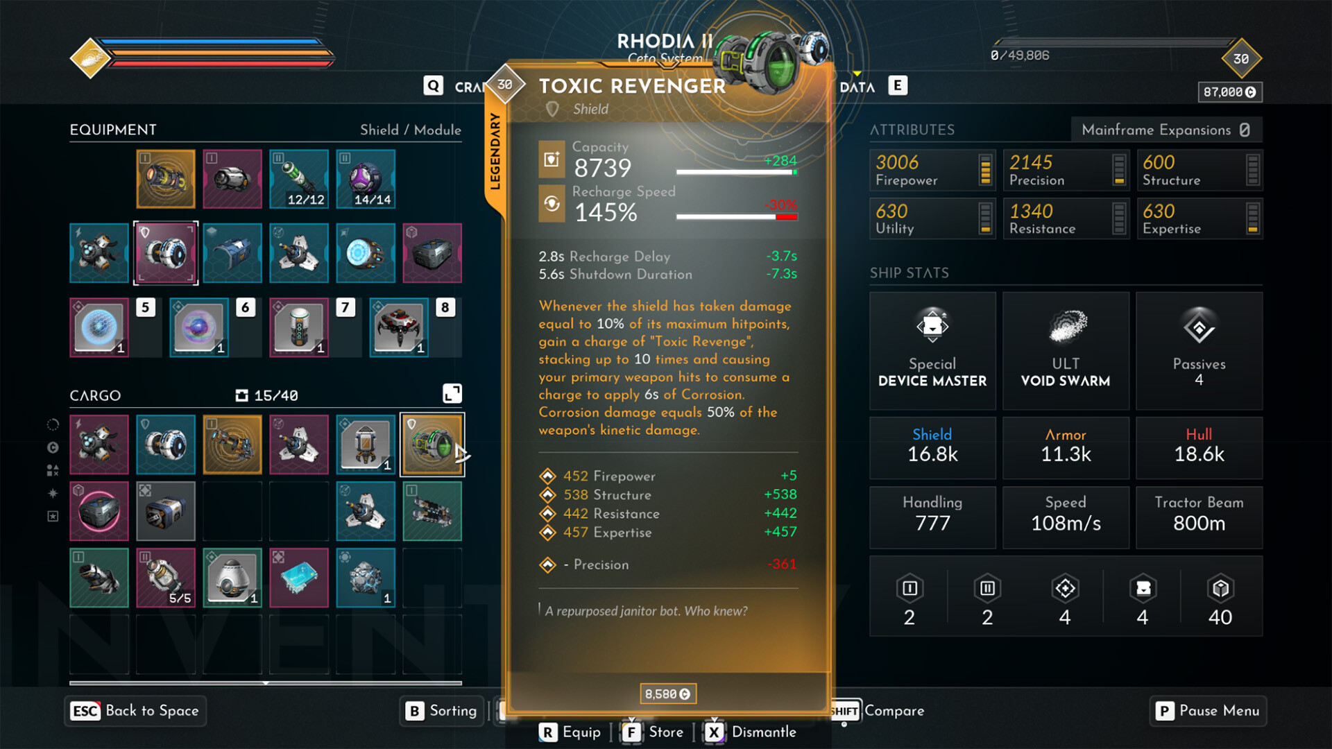 Hunt for the next better gear and be ready to constantly re-evaluate your current setup. Look for loot that fits your playstyle but be willing to leave your comfort zone and try something new. Be ready to find and exploit synergistic effects between equipment, perks, devices, and ships to fully maximize their potential.
