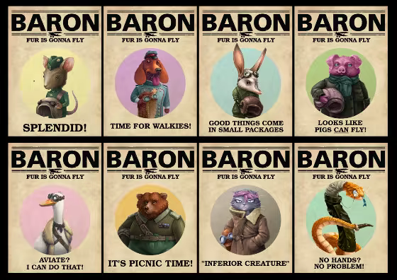 In the world of Baron, pilots are animals, and aerial weapons include Giant Anvils, Flamethrowers, Freeze Rays, and a handful of Stinky Fish!