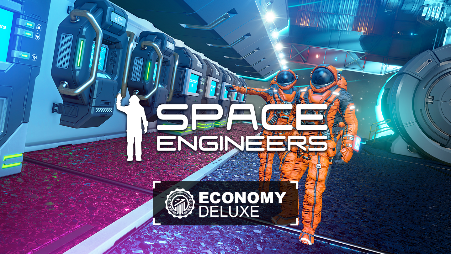 The Space Engineers - Economy Deluxe Pack includes the Miner suit, the Soldier suit, the Disco armor skin, the Silver armor skin, the Glamour armor skin, fourteen Safe zone skins, thirty two Faction icons, the Vending machine and the ATM machine.
