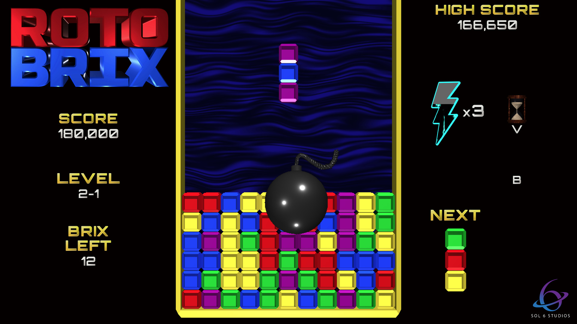 Get ready for the ultimate puzzle game mashup that will test your reflexes, strategy, and nerves! RotoBrix combines the best of falling-blocks gameplay with match-3 mechanics, creating an electrifying challenge where every move counts. Match, stack, and survive—before the Brix overwhelm the playfield!