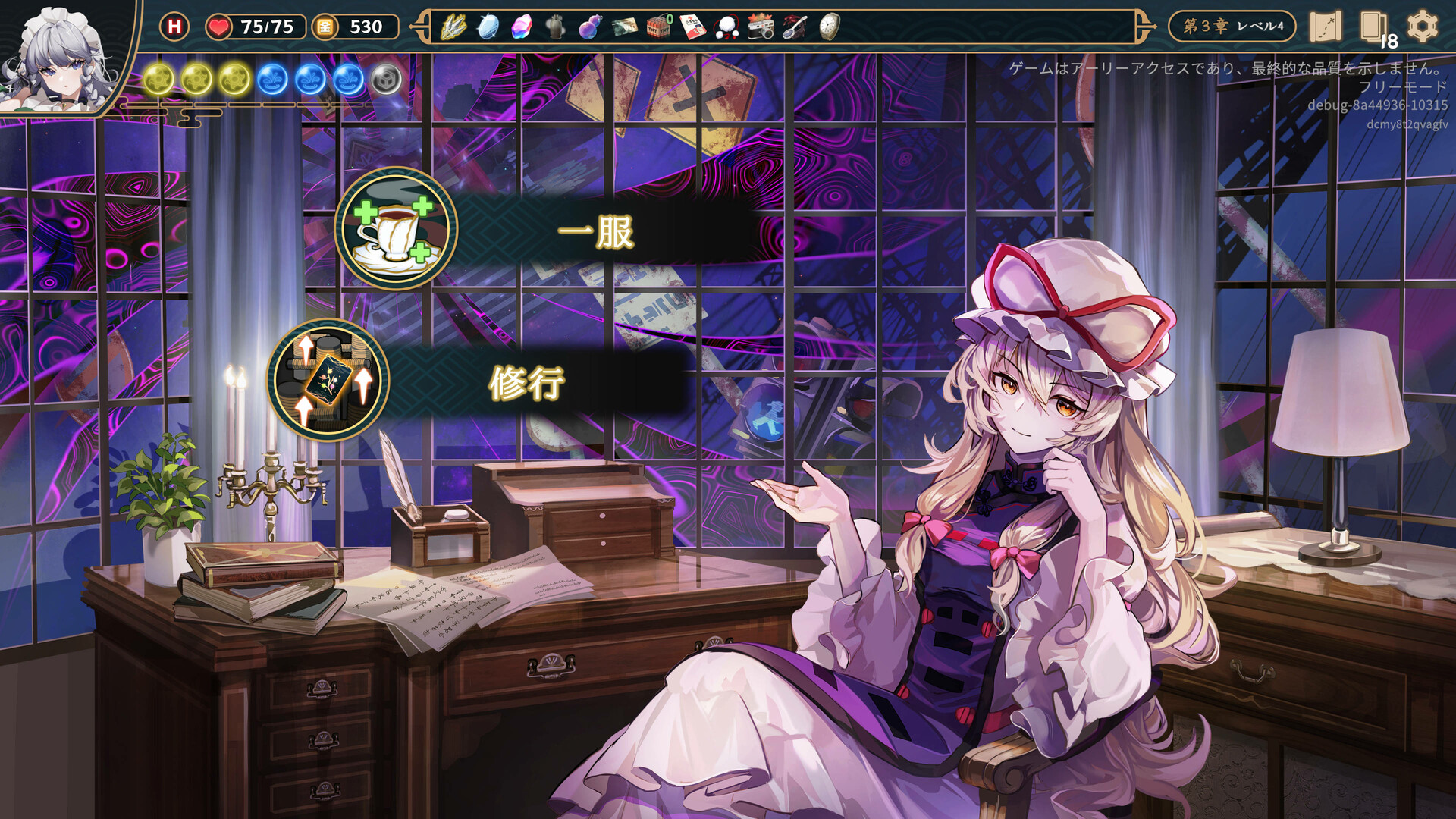 『東方光耀夜』はデッキ構築系ローグライクゲームです。さまざまなカードや展示品を集め、唯一無二の幻想少女たちに挑もう!