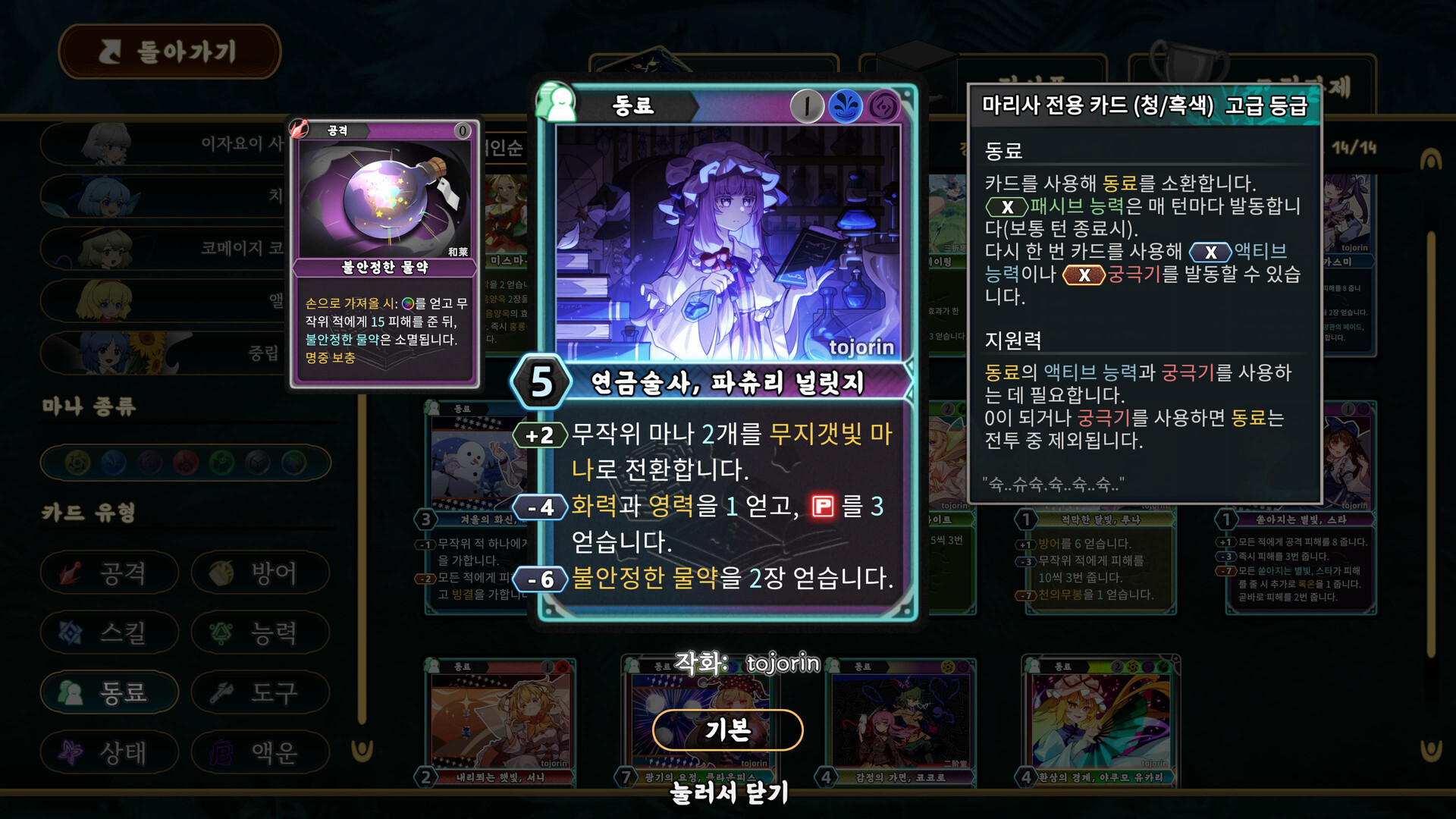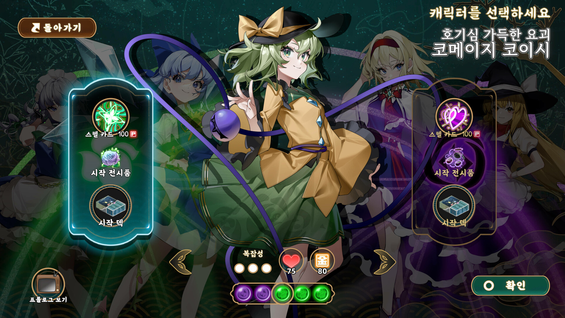 영원정에 어서오세요. 여러 색상의 마나를 조합해 이상적인 덱을 구축하고, 환상향 각지의 환상소녀들과 대결하며, 달의 보물에 얽힌 이변을 뒤쫓으세요. 변화무쌍한 로그라이크와 함께 화려한 탄막을 즐겨보세요!