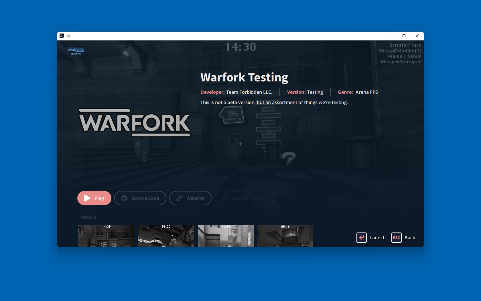 The FVI Launcher gives you quick access to the Warfork Map editor of choice (Netradiant Custom) bundled with the Warfork Game Pack, Warfork, and Warfork Testing.