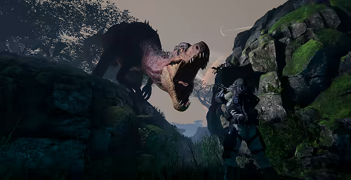 Xenociders is a stealth action VR shooter set on a lush planet ruled by ferocious alien dinosaur predators.