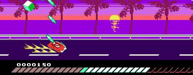SEASIDE DRIVE - Sometimes you'll want a break from long, open-world games and challenging strategy titles, so why not jump into a straight-forward arcade-style action game like Seaside Drive? But even in a popular genre, UFO 50 brings something new to the table - in this case, Ojiro Fumoto (the creator of Downwell) designed a stylish car-based shoot 'em up where "drifting" across the screen is how you power-up your gun.