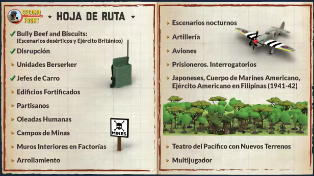 Second Front sigue evolucionando con planes para añadir nuevas características y contenidos. Entre las novedades que cabe esperar en futuras actualizaciones, se cuentan nuevos entornos desérticos y selváticos, apoyo de artillería y apoyo aéreo cercano. Al equipo le apasiona la idea de hacer de Second Front un gran juego y están comprometidos a seguir mejorándolo y ampliándolo en el futuro.