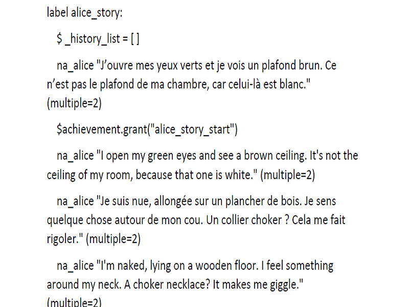 Sexual scenes : No Consent / Dubious Consent / Consent, depends on the story chosen.