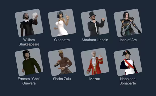 History Warriors brings to present time the following fighters: Abraham Lincoln, Joan of Arc, Cleopatra, Shaka Zulu, William Shakespeare, Ernesto "Che" Guevara, Napoleon and Mozart.