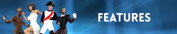 • A unique roster of eight characters you've only seen in history books, making their debut in fighting games.