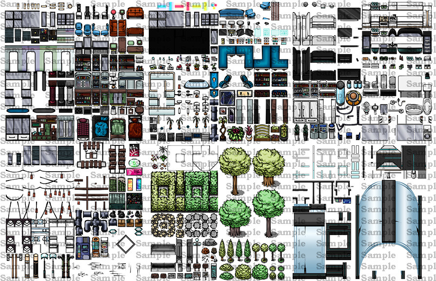 * 11 tilesets with which you can create modern and futuristic-looking cities with, including interiors and exteriors (22 sets in total, taking into consideration both