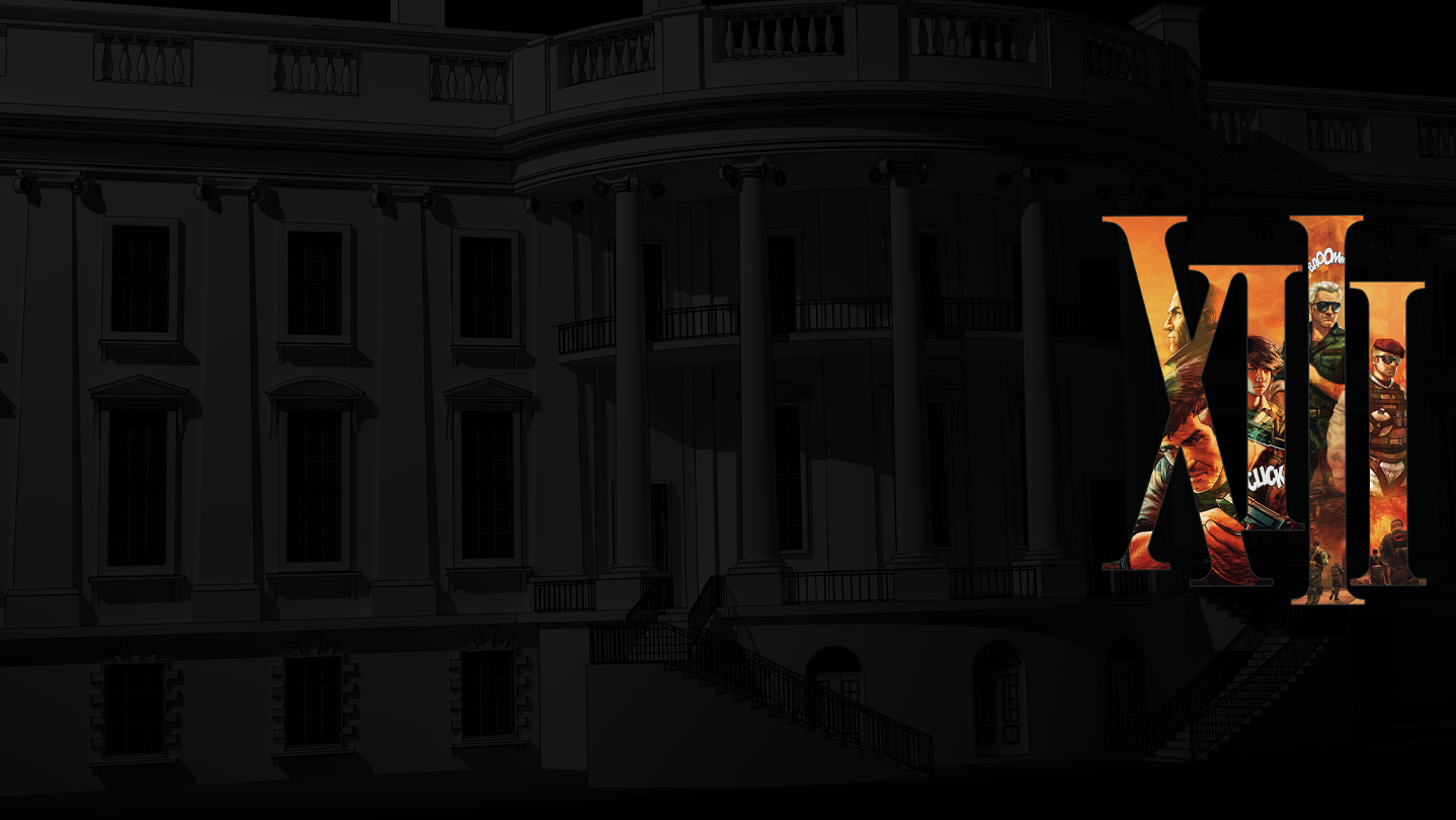 “Who killed President Sheridan? And who are you? You’ll find out in XIII!”