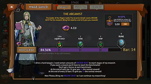 The MAGICIAN'S RESEARCH is an RPG style IDLE - INCREMENTAL - MANAGEMENT Game! The Experiments of the Mage's Guild have broken out and you are tasked with tracking down, researching, and disposing of them before they can disturb the nearby towns or multiply!