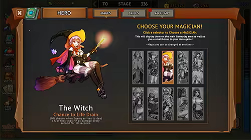 Well… Now that’s the question isn’t it? Choose from one of 10 magician’s, each with their own special bonuses! (You can change at any time). Play as the one you think looks the best, the one with your favorite bonus, or be a changeling and flip around as they suit your situation.