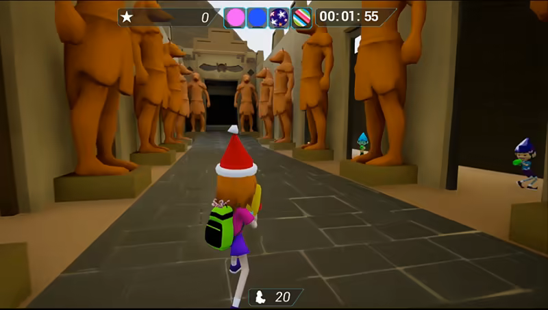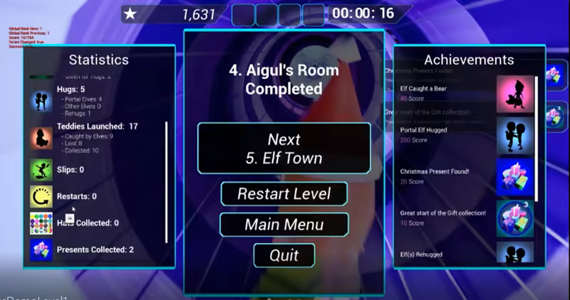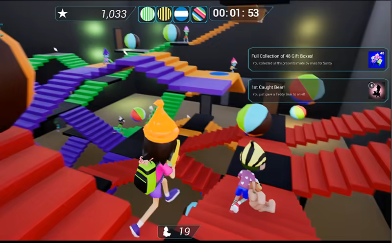 Kid friendly action game - to bring Christmas presents to Santa. For a low poly 3D shooter it has a unique gameplay. You have to hug key elves and deal with mischief ones to pass through levels. 1001 Hugs has a new game story, more levels, achievements, leaderboard, and character customization.