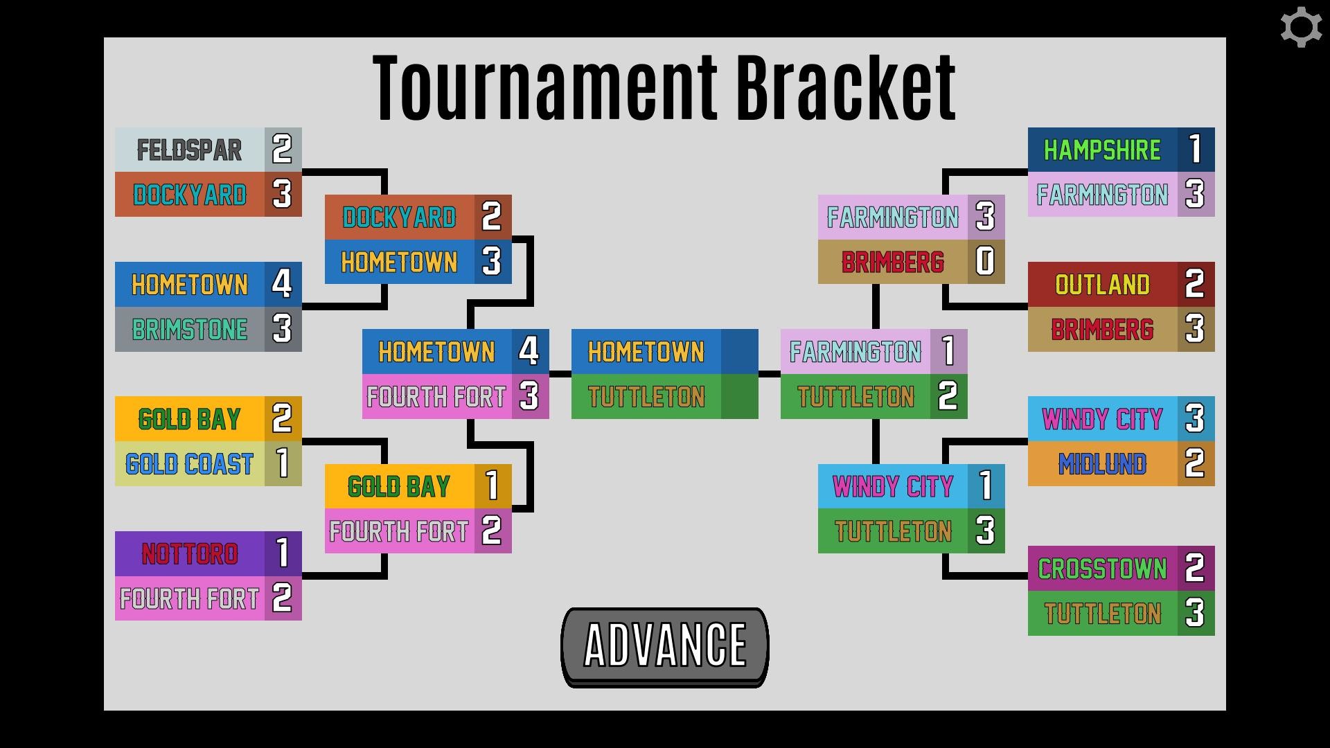 Compete in tournaments! Play 4, 8, or 16-team tournaments against friends or computer-controlled teams to determine which team is the greatest of them all.