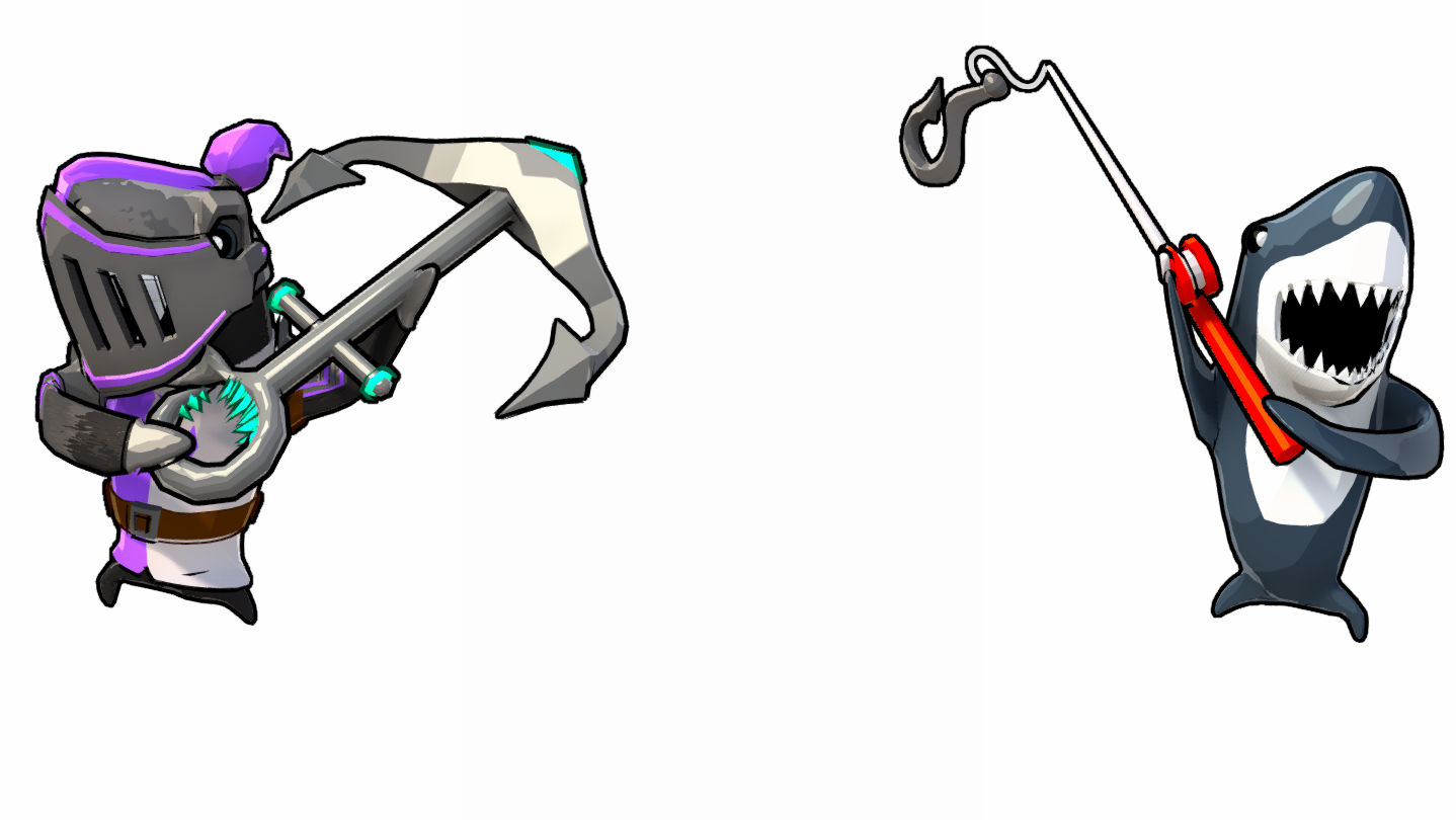 Last Shark Standing is a couch-play party game where you use your superior fishing skills to throw your friends out of the arena.