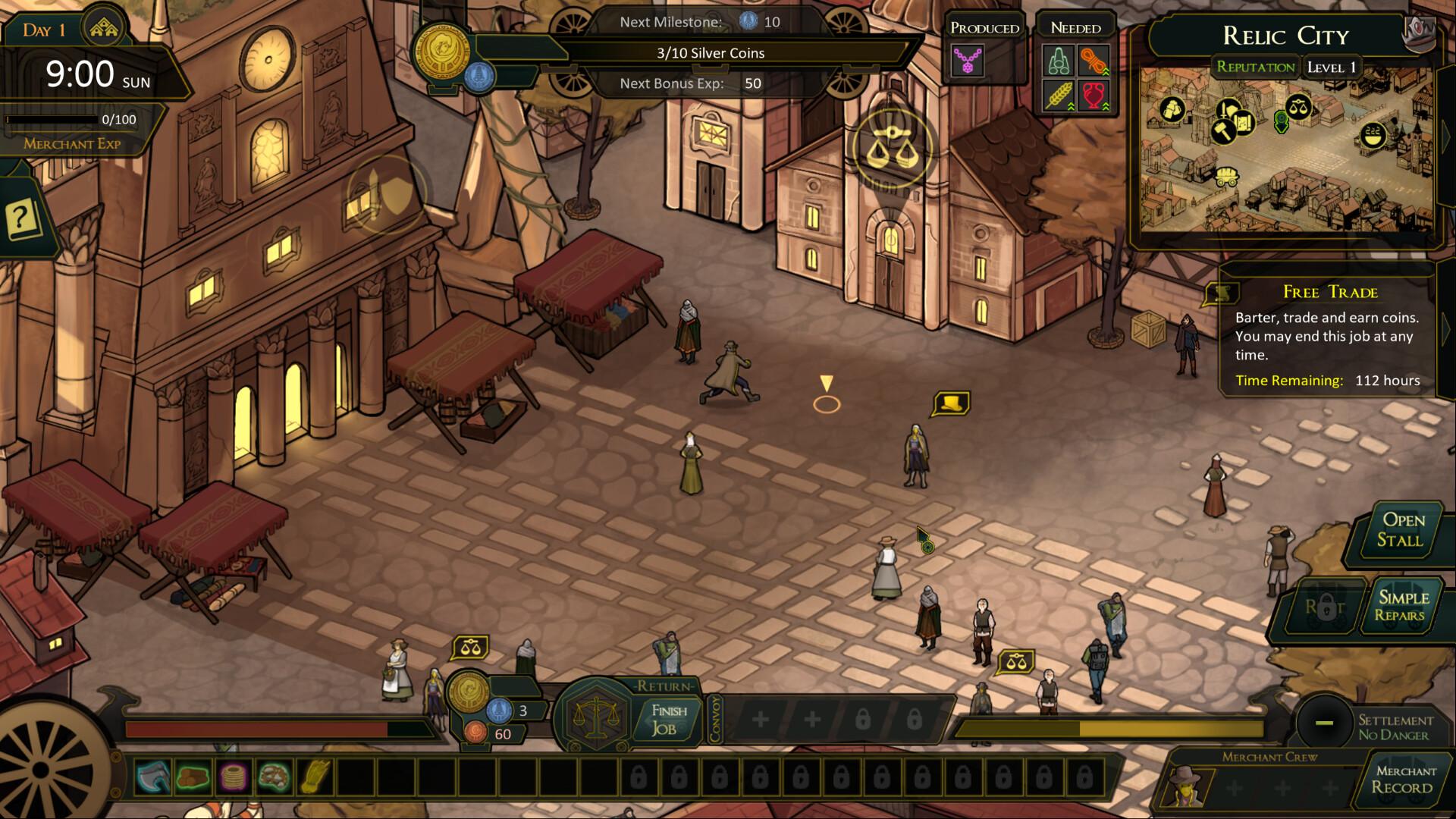 Master the art of trading between settlements with resource and inventory management. Barter goods directly with traders while balancing their moods and needs. Knowing what goods and when to offer them is the key to a successful trade.