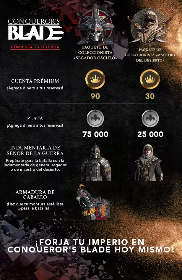 Aviso: «Conqueror's Blade - Desert Master Collector's Pack» ya no está disponible en la tienda de Steam.
