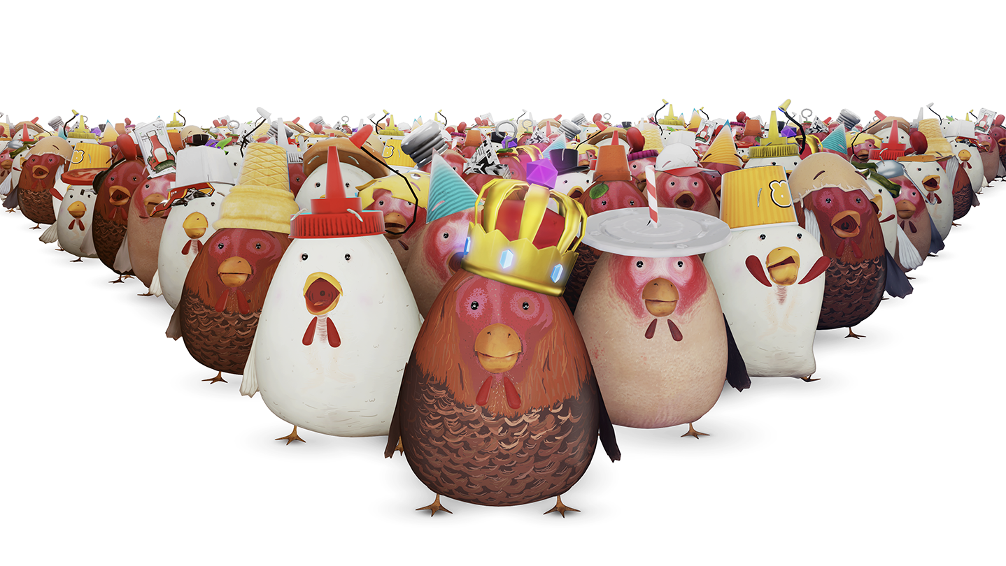 80 chicken players compete to be the last standing on an unstable disk above a gruesome grinder. The last player standing on the disk avoids being turned into a chicken nugget. Become #1 on the leaderboard and you'll be rewarded with a golden crown.