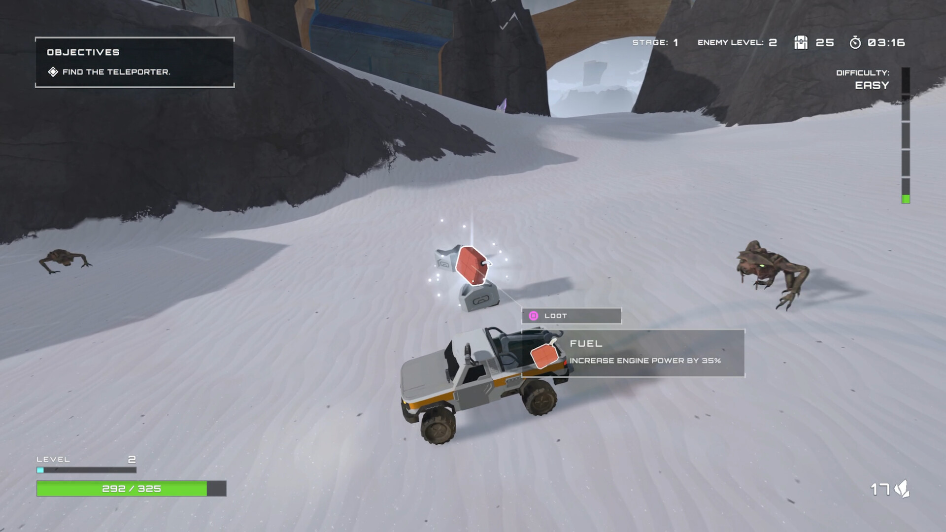 Boost, drift and blast through alien wastelands in fast-paced third-person vehicular combat.