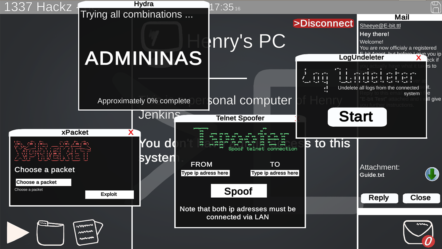 >Connect is a hacking simulator which takes inspiration from real hacking tools and processes but implements them in an intuitive, easy to play and beginner-friendly way.