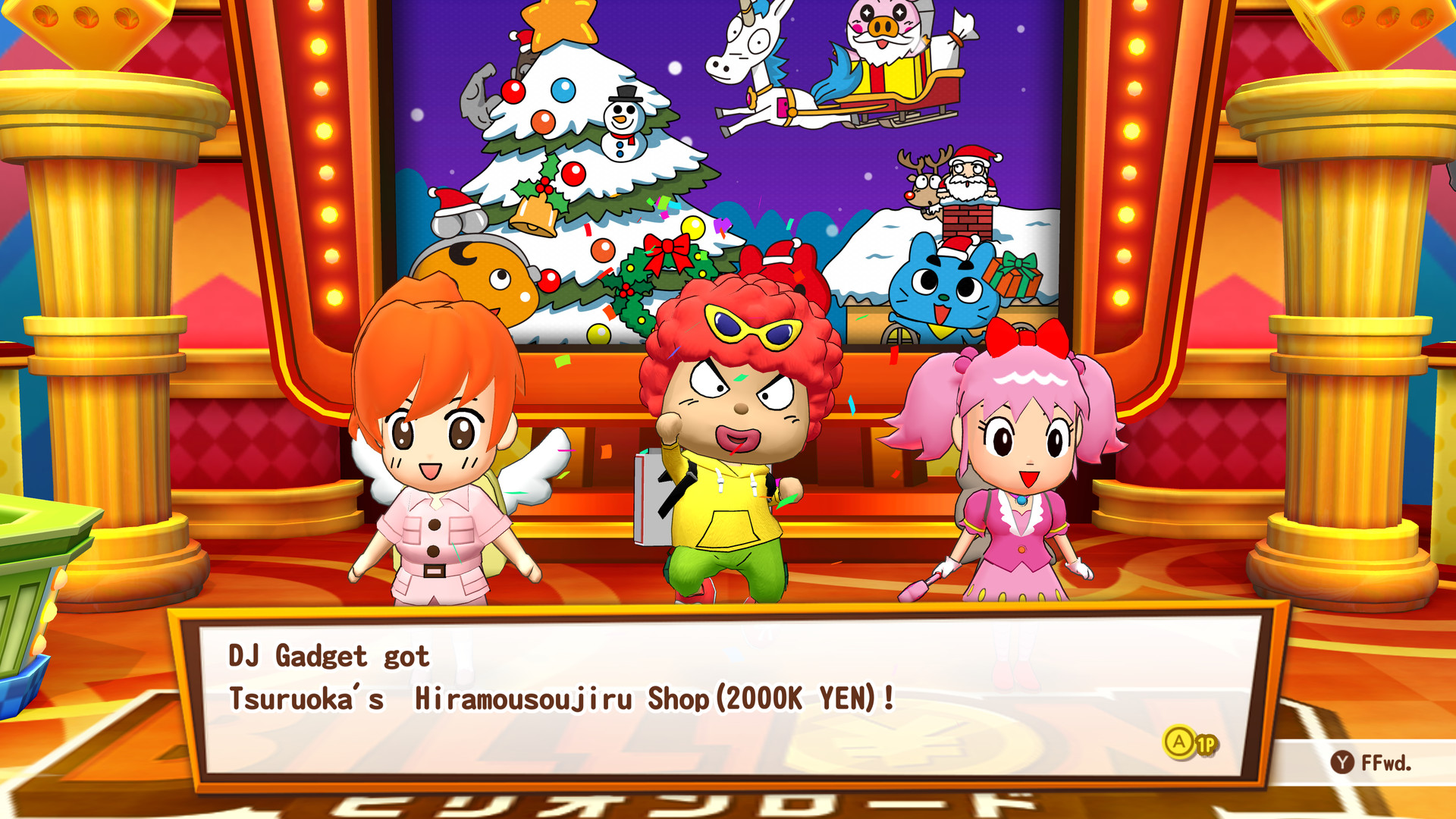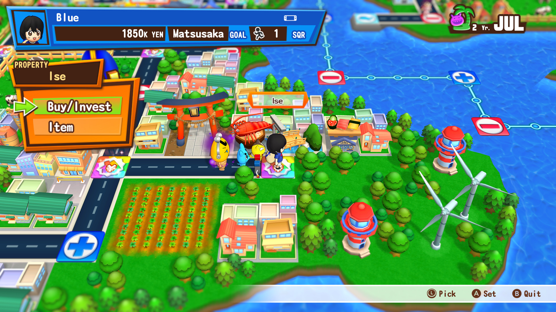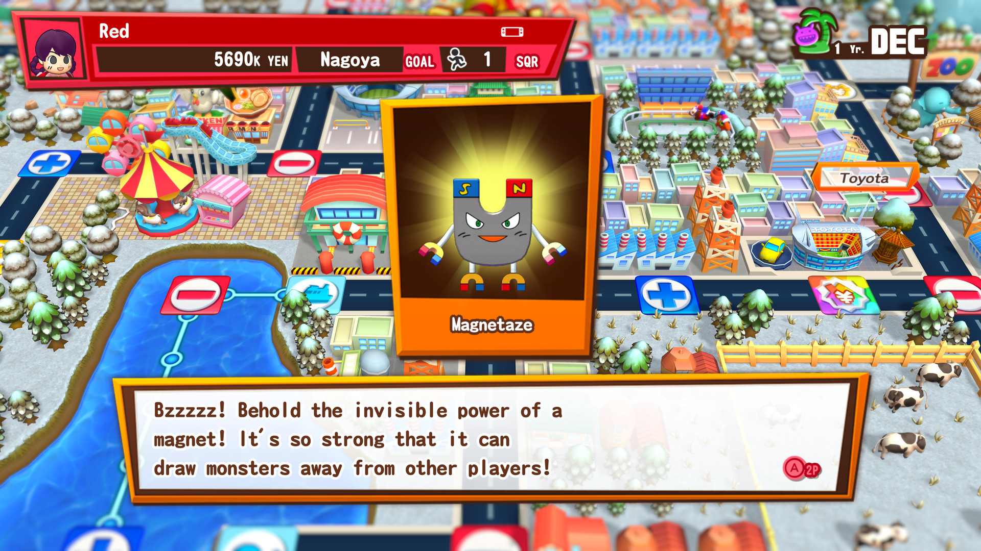 The core objective in Billion Road is pretty straightforward—travel all across Japan and earn more money than anyone else. You earn money by landing on property squares with investment opportunities, like a sushi restaurant in Ginza or an animation goods store in Akihabara. After you invest, you’ll have to wait until March rolls around for those investments to pay off. In the meantime, be on the lookout for errant monsters that may shower you with riches...or throw a wrench in your plans! You can also earn extra money by landing on item squares, which can either help you reach your own goals or simply ruin your rivals’ plans. If you finish the game with the most money...you win!