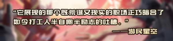 这是一款带有Rougelike元素的卡牌战斗+角色养成游戏。玩家将扮演一名职场新人,体验超现实的中国职场之旅。是像半泽直树一样”以牙还牙,加倍奉还“,还是如勾践”卧薪尝胆,厚积薄发”?您将用自己的方式编写职场故事,构筑卡牌,与由职场困境所幻化而来的邪恶意兽进行战斗。