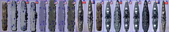 Light Aircraft Carrier, Escort Aircraft Carrier, Anti-Sub Aircraft Carrier, Aircraft Carrier, Fast Aircraft carrier, Heavy Aircraft Carrier, Fleet Aircraft Carrier, Light Cruiser, Escort Cruiser, Anti-Sub Cruiser, Cruiser, Heavy Anti-Sub Cruiser, Heavy Cruiser, Fleet Cruiser, Battle-Cruiser, Battleship, Heavy Battleship, Fleet Battleship