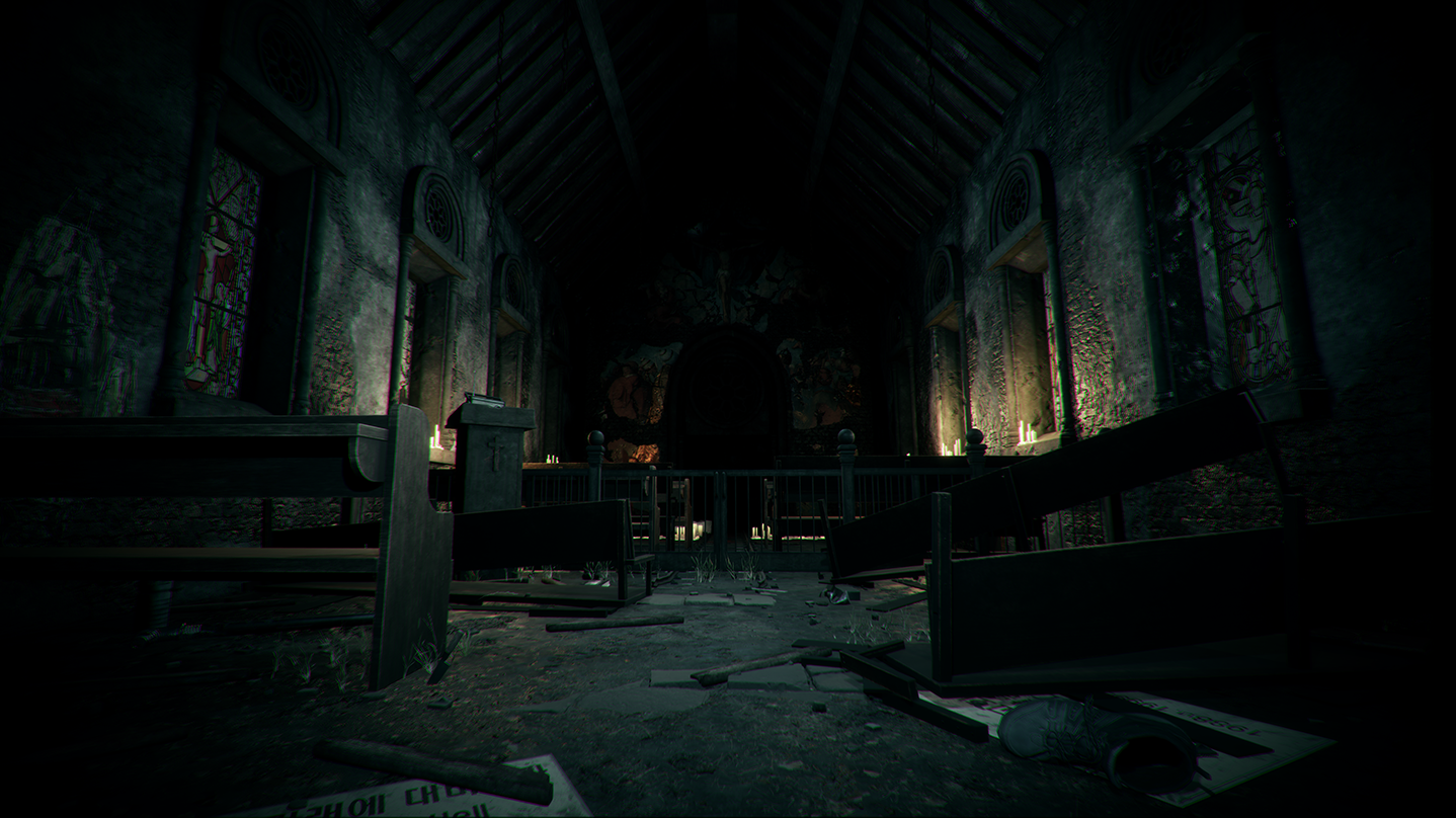 The beauty of VR is that it allows players to be fully immersed in the environment. We created the backgrounds with a focus on reality to give players the ultimate immersion experience. Feel the killer's lair in VR, a converted abandoned chapel in a remote village in South Korea.