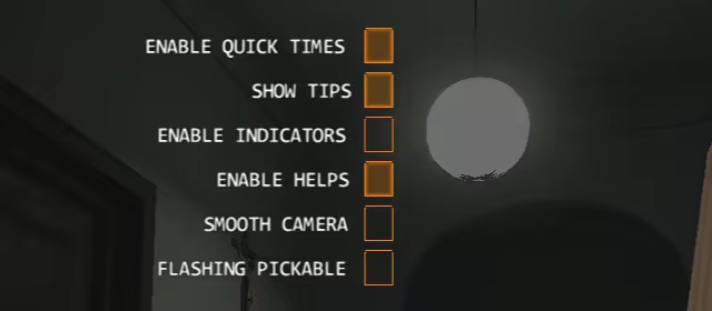 • Puoi abilitare l’opzione “aiuti”. Attivandoli, il gioco ti aiuterà in molte situazioni, come trovare una chiave o un oggetto importante. Se preferisci fare tutto da solo, anche se significa passare molto tempo nel gioco, puoi disattivare questa opzione.