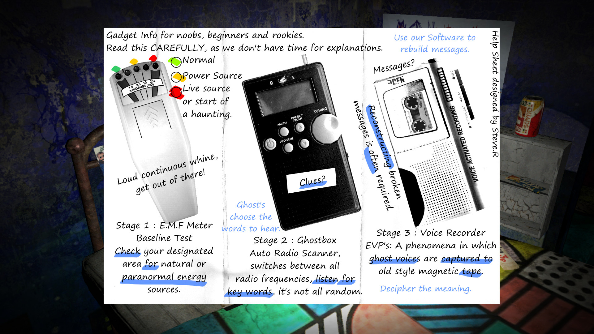 • Follow ghostly clues heard via the Ghost Box.