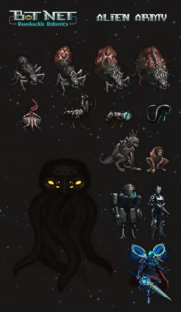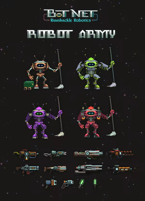 "Build your bots, command your army, defeat the invaders!" 'Bot Net: Ramshackle Robotics' is a turn-based strategy rogue-like where you'll build an army of ramshackle robots to fight off an alien invasion!