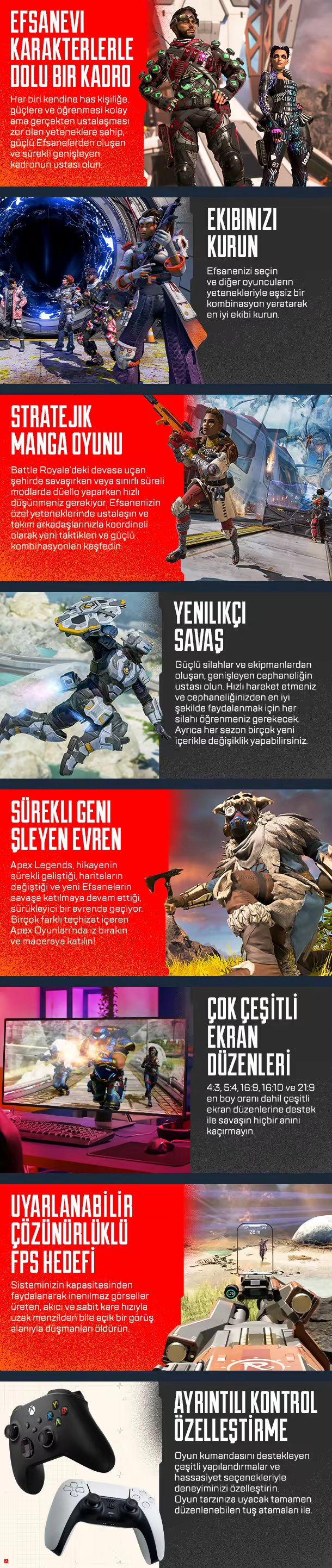 Güçlü yeteneklere sahip efsanevi karakterlerin Frontier’ın sınırlarında şöhret ve ganimete ulaşmak için savaştığı ücretsiz oynanabilen* Kahraman nişancı oyunu Apex Legends’ı kendi yönteminizle fethedin.