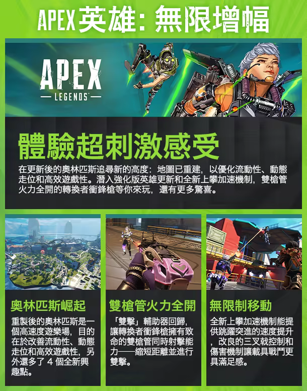 《Apex 英雄》是一款由 Respawn Entertainment 打造的獲獎免費英雄射擊遊戲。掌握一系列不斷增加且擁有強大技能的傳說級角色,並體驗戰略性小隊玩法和新一代英雄射擊與大逃殺遊戲中的創新玩法。