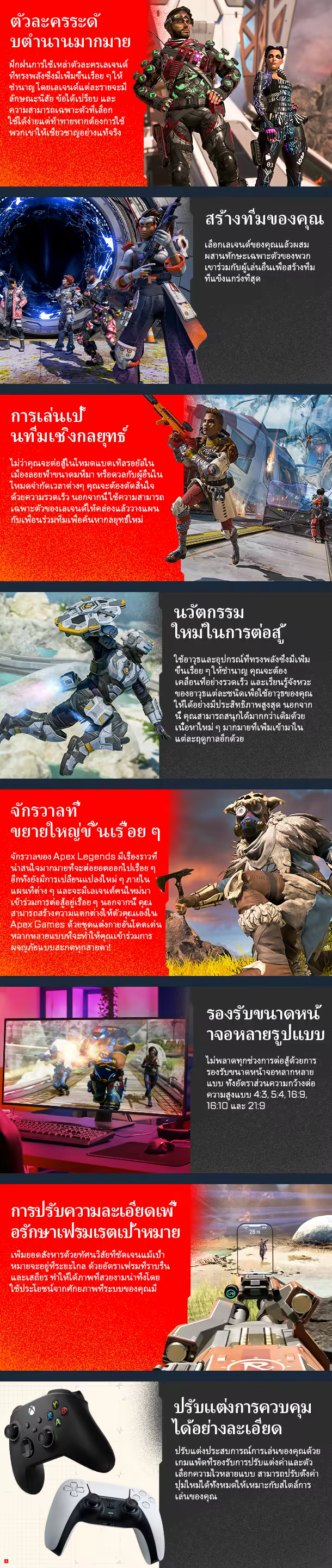 Apex Legends คือเกมเล่นฟรีแนวฮีโรชูตเตอร์จาก Respawn Entertainment ที่ได้รับรางวัลมาแล้วมากมาย ฝึกใช้ตัวละครระดับตำนานที่เพิ่มขึ้นเรื่อยๆ และความสามารถอันทรงพลังของพวกเขาให้คล่องแคล่วแล้วค้นพบการเล่นเป็นทีมเชิงกลยุทธ์กับระบบเล่นเกมแบบใหม่ที่เป็นวิวัฒนาการขั้นต่อไปของเกมแนวฮีโรชูตเตอร์และแบตเทิลรอยัล