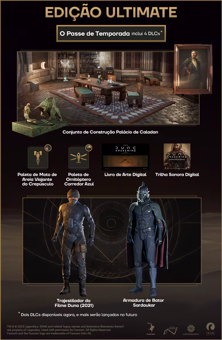 Inclui 3 itens: Dune: Awakening, Dune: Awakening - Deluxe Edition Upgrade, Dune: Awakening - Ultimate Edition Upgrade