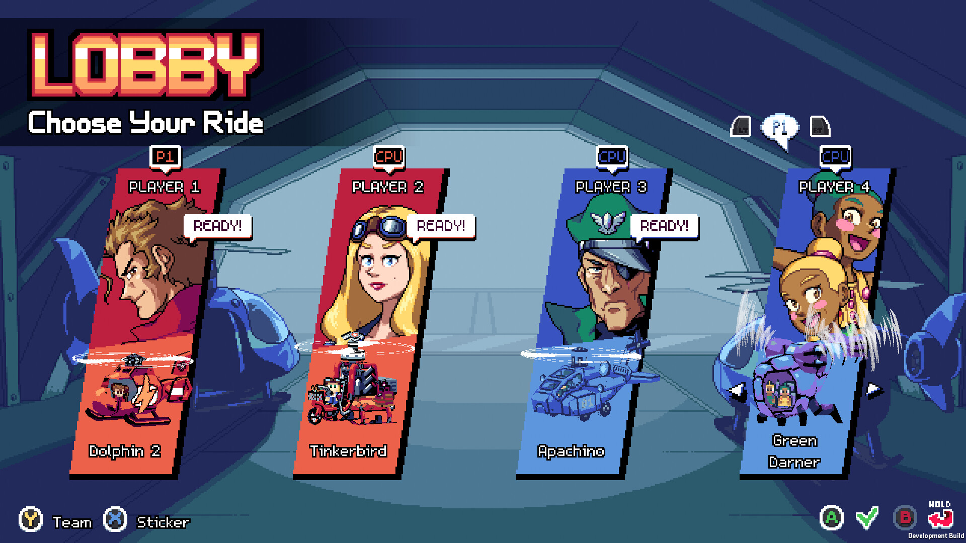 • Competitive local multiplayer: Engage in intense local multiplayer battles for up to 4 players, offering a high-flying twist on vehicular soccer action—this time in the sky with choppers!