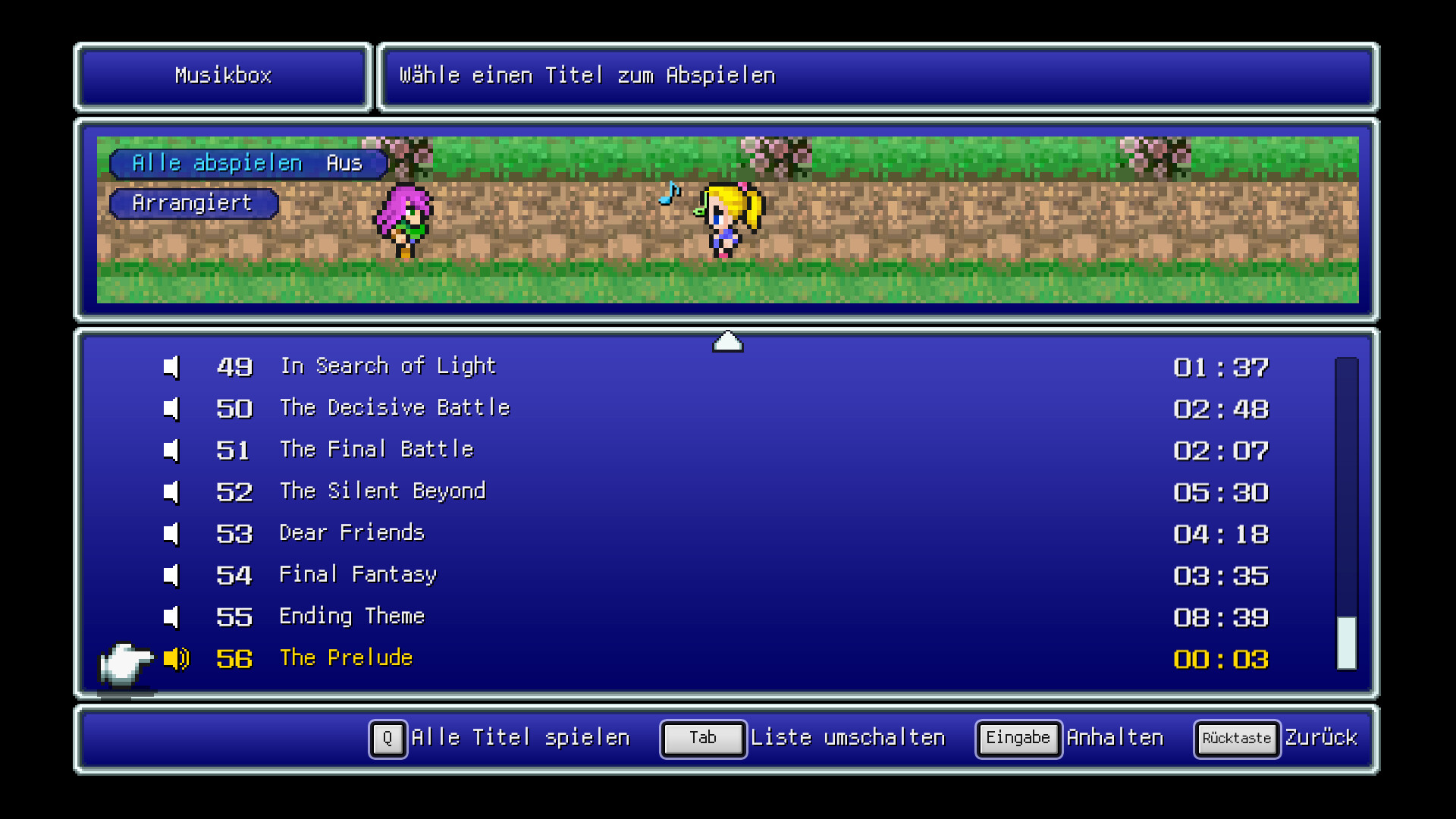 • Wechsle zwischen zwei Soundtrack-Versionen: der Version, die speziell für die Pixel-Remaster-Version neu arrangiert wurde, und der Originalversion mit ihren nostalgischen Klängen.