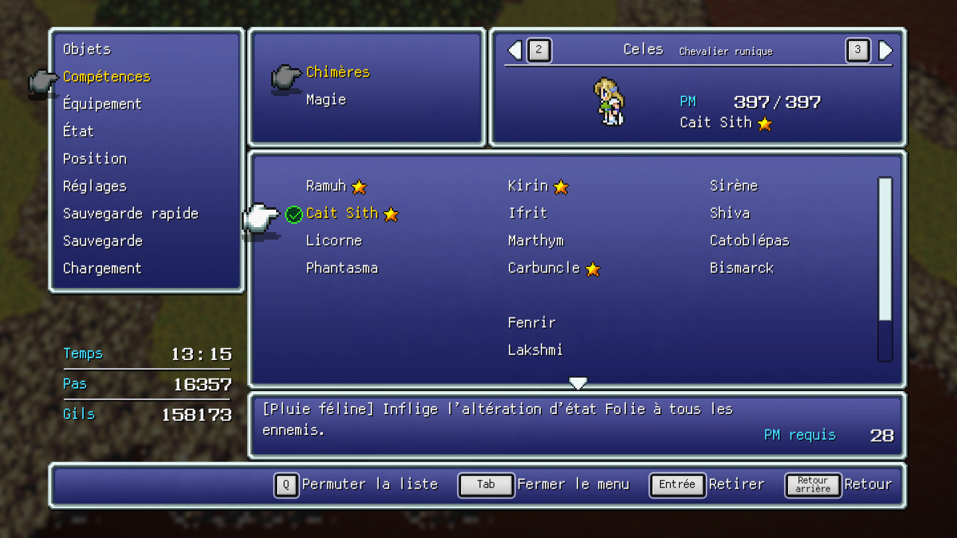 • De nouvelles fonctionnalités permettant d'enrichir le gameplay : désactivation des combats aléatoires, multiplication de l'expérience obtenue par un nombre de 0 à 4, multiplication des PA de magie obtenus par un nombre de 0 à 4, etc.