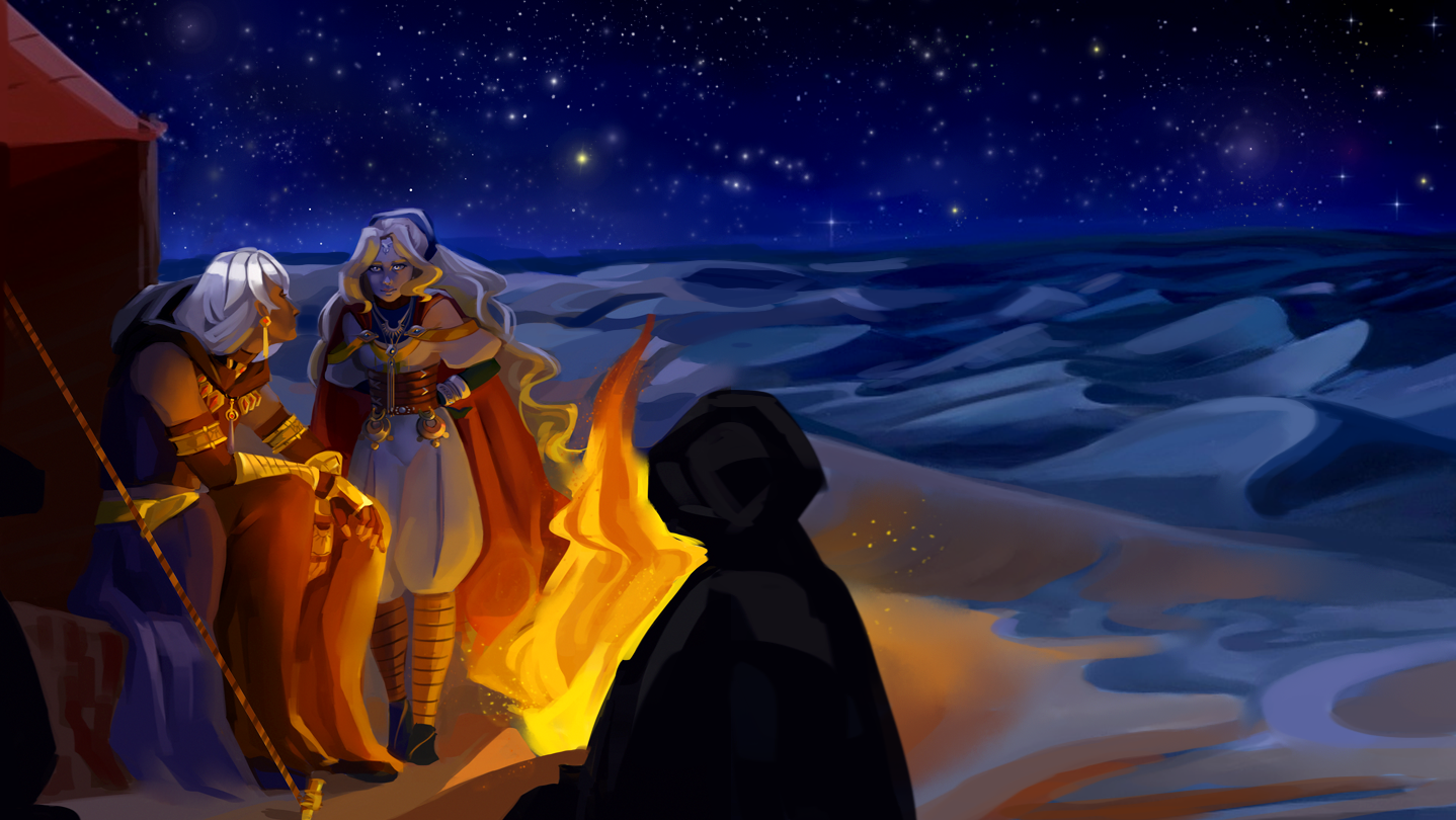 Earthshine tells the story of two travelers, Talia and Inar, as they journey across the Desert in search of the Fields of Oblivion. Legend has it that these fields contain beautiful flowers: flowers that can heal any wounds, resurrect the dead, and grant immortality to those who seek it. But nobody has ever proved the rumors to be true before…