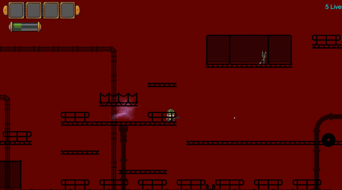 You'll play Army Guy who is on a mission to find all parts for his canon. These parts are scattered trougout 4 platformer levels full of traps and dangers.