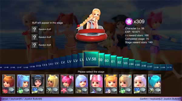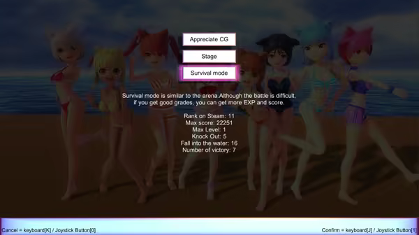 2.The characters will wear swimsuits in this game.There are 15 characters.You can unlock their CGs after you win the game.(You can take photos when the characters are falling into the water.)