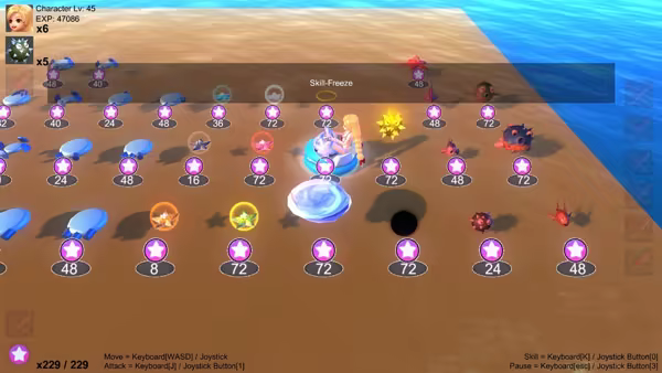 1.This is an action game.It supports multiplayer fighting.You can experience the feeling that you played bumper cars when you were a child.You can attack your opponents by hitting and launching bombs.You will win the game when all enemies fall into the sea.